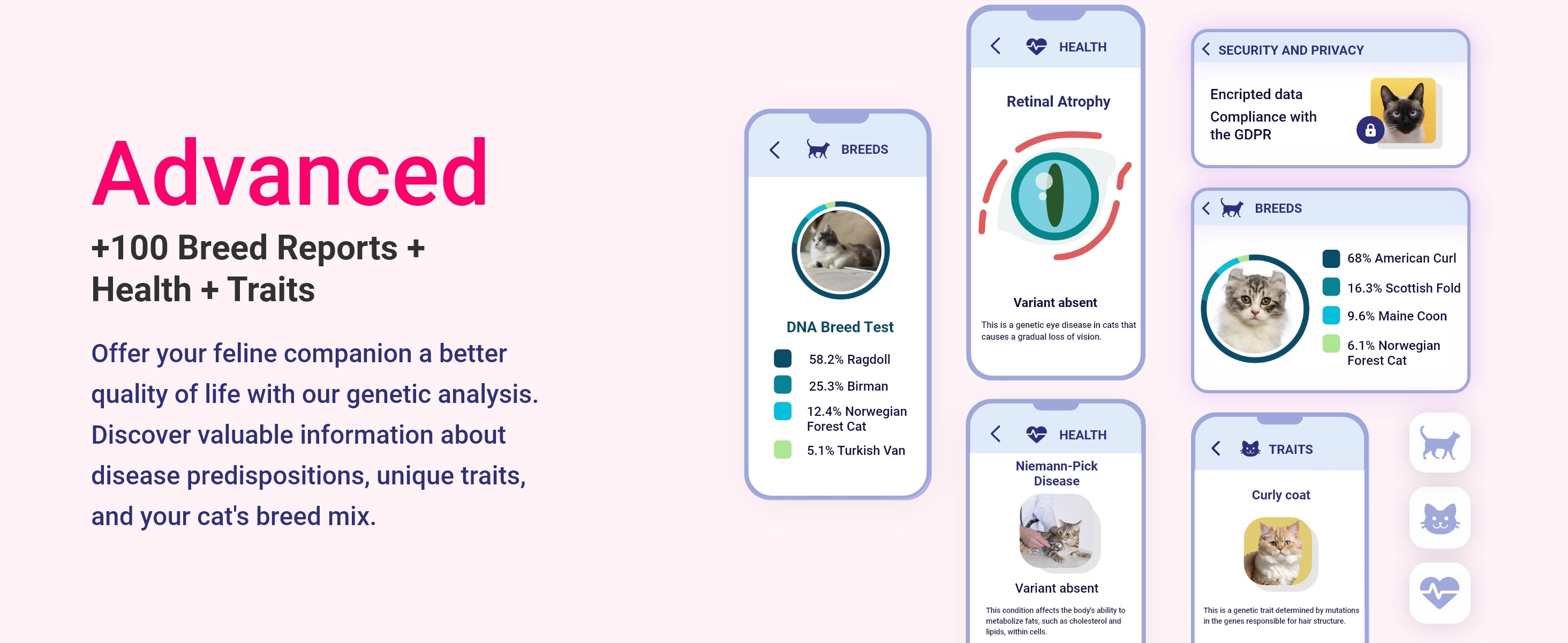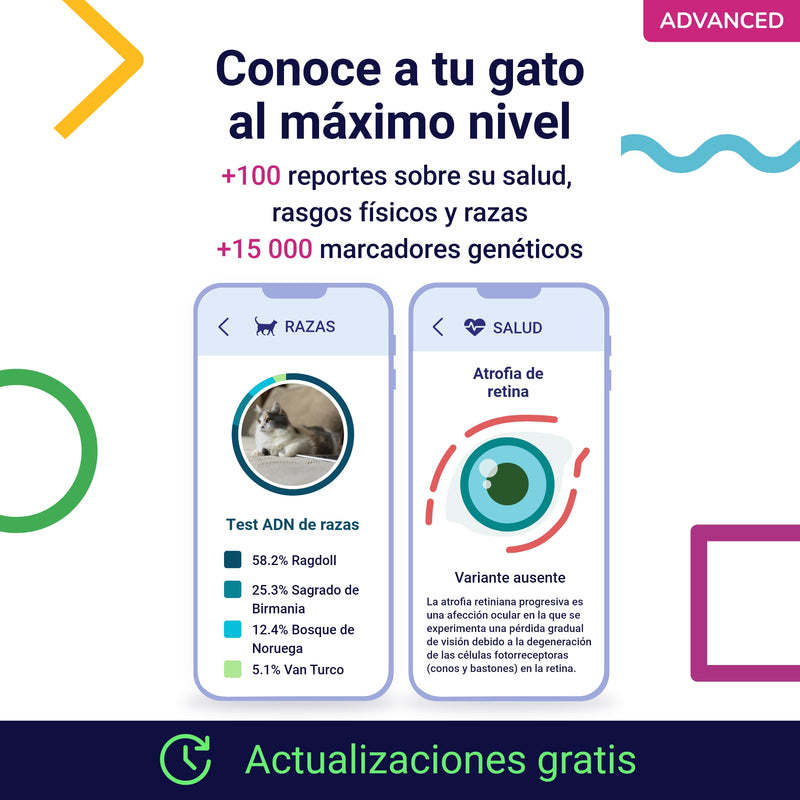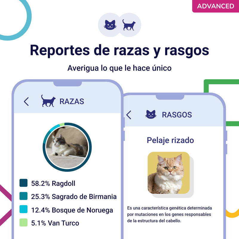 Get the Advanced Cat DNA Test to discover information about breeds and physical traits that your cat’s genes are eager to share. Both of you will gain access to: