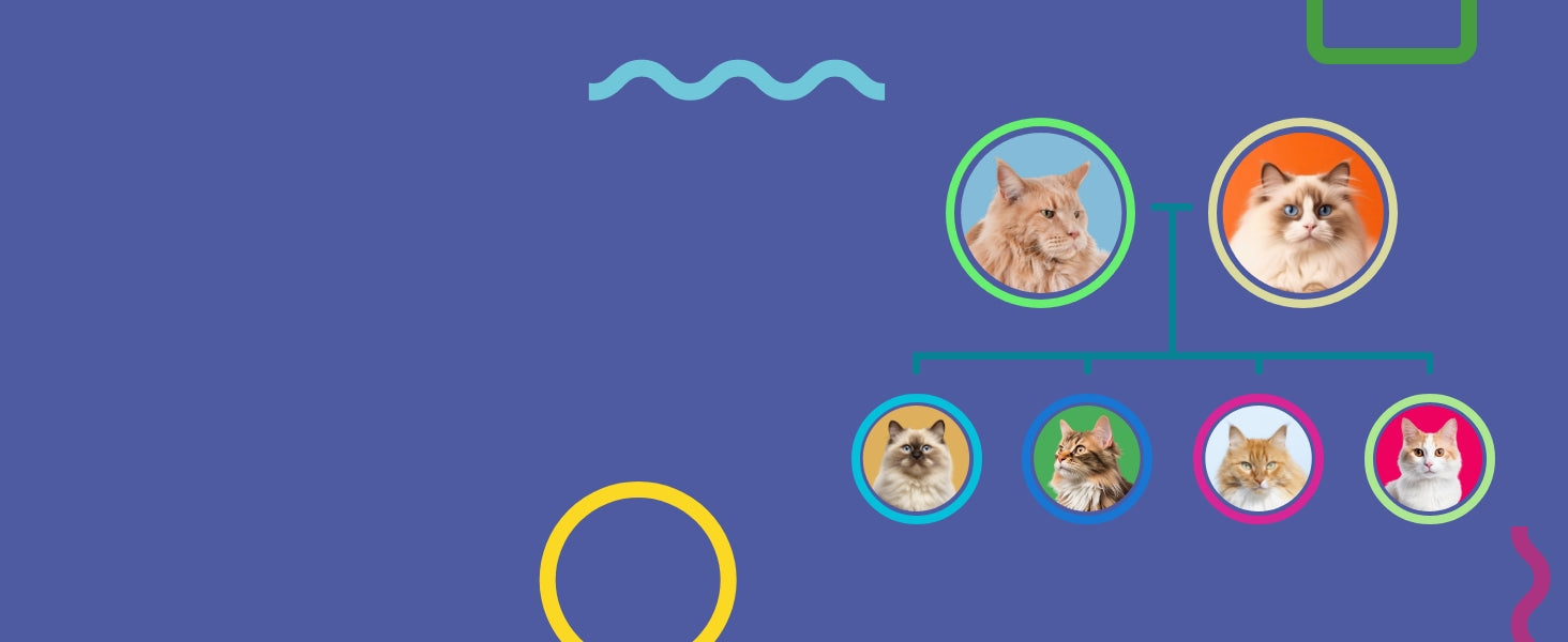 • The list of breeds that make up your cat. We’ll tell you which breeds and in what percentages your cat belongs to, from a list of dozens of options. You’ll also see their family tree, showing the breeds of their ancestors up to their great-grandparents.